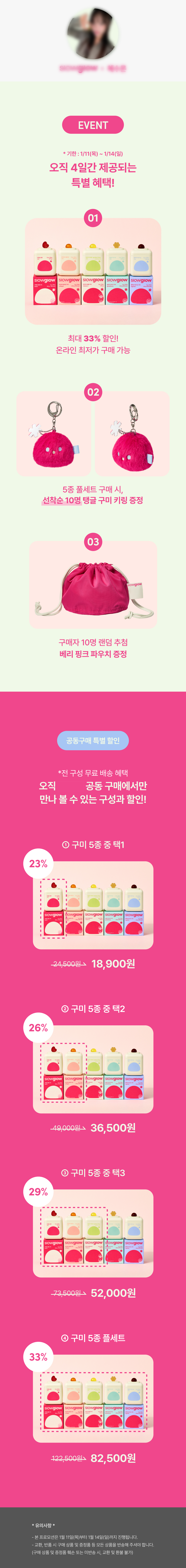 공동구매 유입 고객이 제품 정보를 빠르게 확인하고 구매를 완료할 수 있도록, 주요 기능과 옵션 정보를 명확하게 정리했습니다.